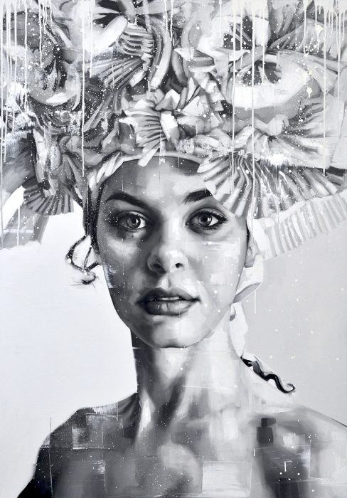 Porzionato began exhibiting his art in 2007, that same year he was selected to exhibit at the Arte Mandadori in Italy. Just a couple years later in 2010 he was selected as the critics’ prize winner at Saluzzo Art, that same year he was commissioned by the Museum of Urban Art in Turin for a permanent work of art. In 2011 he was selected for the 54th Venice Biennale, exposing both the Pavilion regional Italian Pavilion in Turin, Sala Nervi. In 2013 he realized three installations named “Temporal Code” composed by 112 paintings for the MACS (Museum of Contemporary Art in Sicily), almost a gallery of mirrors that reflected the different ages of man from childhood to old age: each portrait has the same intensity and significance. In addition to his numerous awards and honors following his quick rise to artistic notoriety Porzionato has had his art displayed in numerous solo and group exhibitions around the world, and has continued to be commissioned for many more works and series. His most recent exhibitions were held in Hong Kong, Miami, Chicago, London, Paris, Bogotá, New York, Seoul and Istanbul.